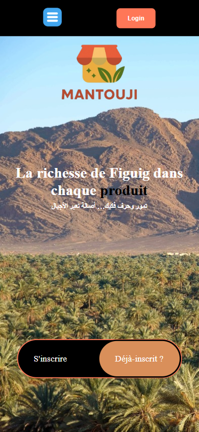Mantouji est une plateforme dédiée à la valorisation des produits agricoles, agroalimentaires et artisanaux, avec un ancrage fort dans la région de Figuig. Elle met en relation directe les producteurs, coopératives et artisans locaux avec les consommateurs et partenaires, en garantissant authenticité, traçabilité et qualité.